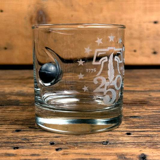 250th Anniversary Whiskey Glass with Embedded Musket Ball