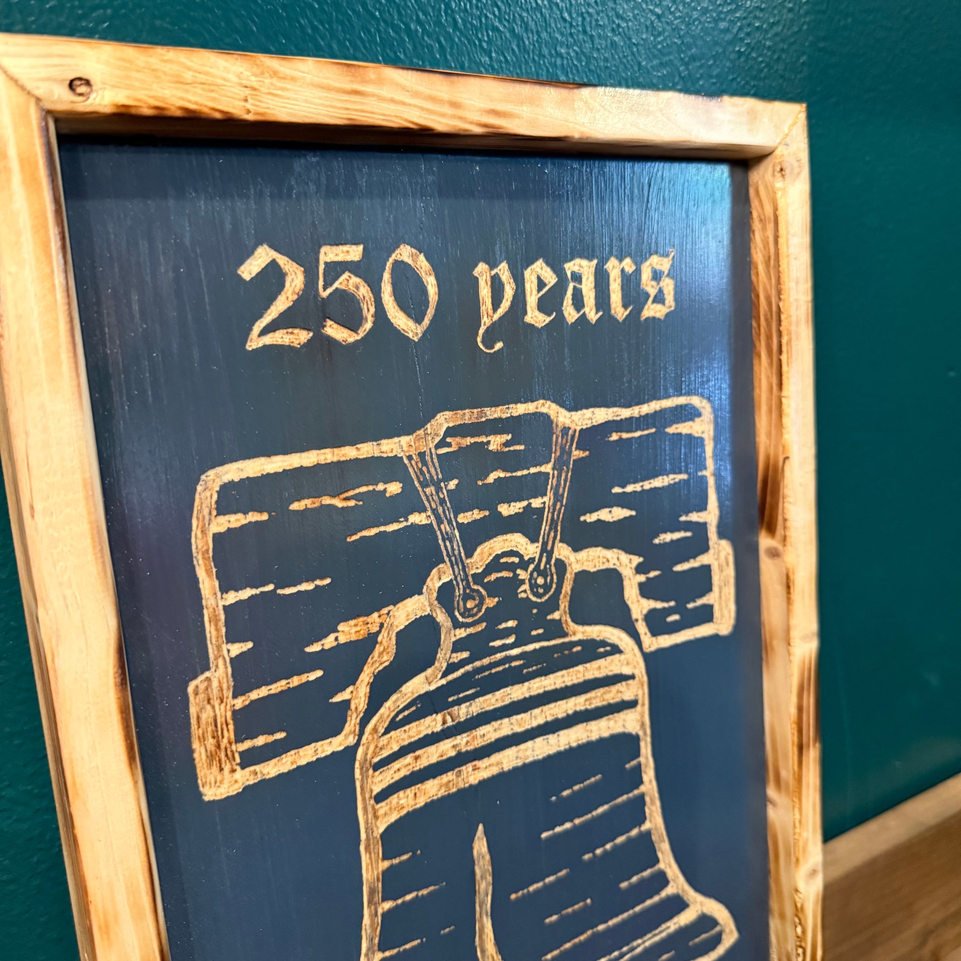 Commemorate the semiquincentennial with this striking "250 Years of Liberty" shadowbox featuring the Liberty Bell – hand carved and hand painted in Pennsylvania by Emerald Flags!