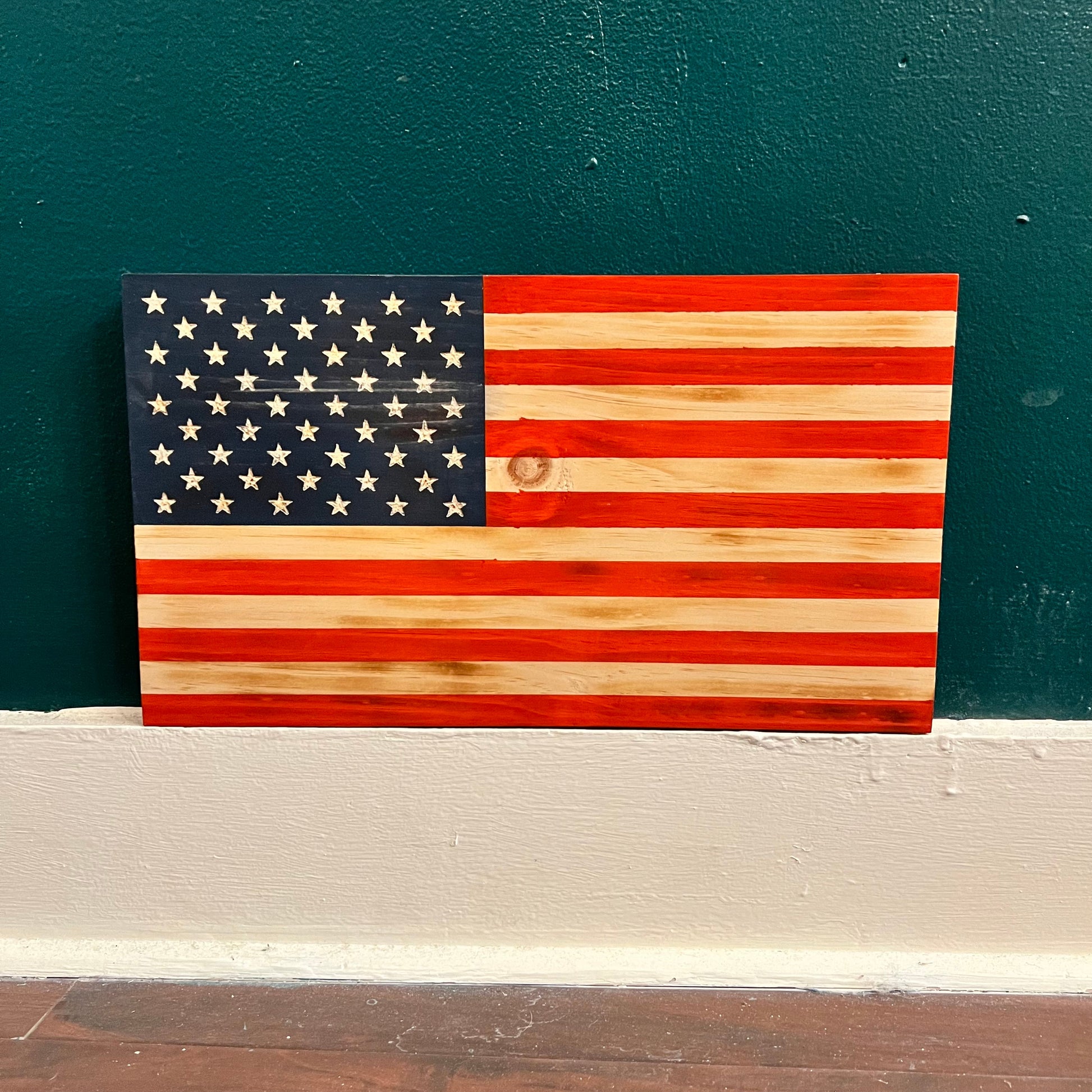 50-star American wooden flag. Handcrafted in small batches in Emerald, Pennsylvania.