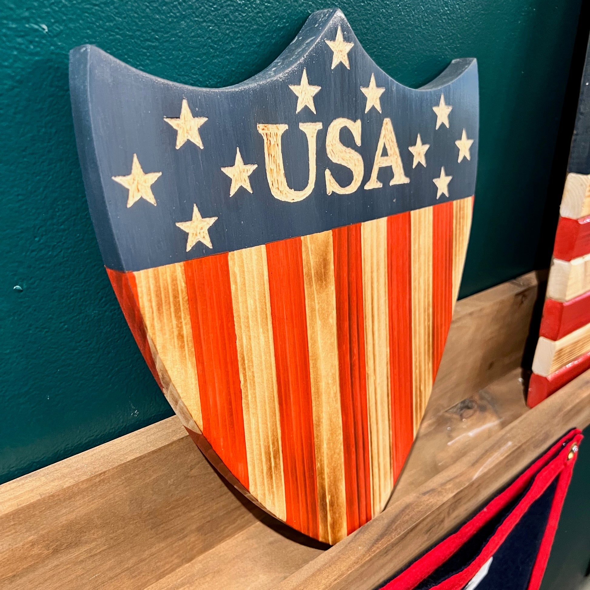 Hand Painted Wooden "USA" Shield